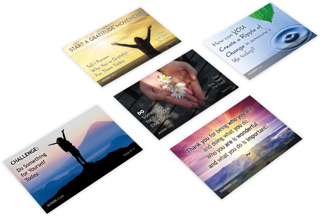 Tracka'Cards™ are unique and fun "trackable" and "sharable" inspirational cards on topics that are designed to acknowledge and appreciate people in and around your life. A proven concept created 20 years ago, this powerful idea is now connected to a unique mobile app that allows you to track your cards the moment you get them and then watch as they are passed along with you choosing who to give it to next.Each single card (you'll get two each of the above cards) has its own tracking number and the opportunity to create their own "ripple" or mini-movement in the lives of the people they touch. You can start your own 10 ripples by simply filling out the form on this site to get 10 free cards - ZERO cost, ZERO shipping - totally free!